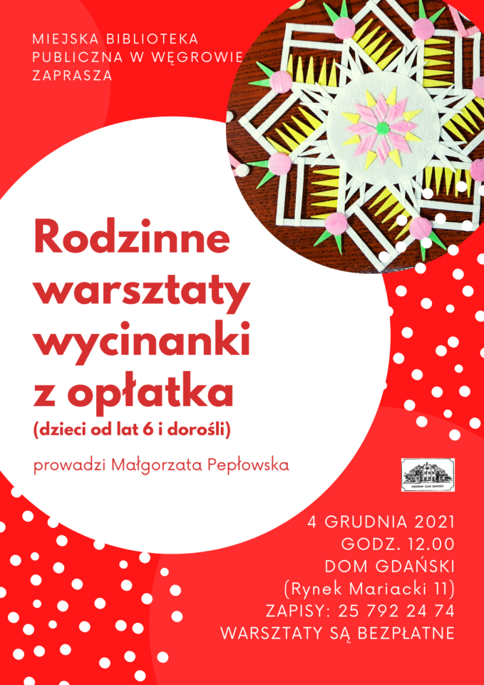 Już w sobotę, 4 grudnia, będzie można zrobić u nas wycinankę z opłatka! Warsztaty poprowadzi Małgorzata Pepłowska, twórczyni ludowa, instruktorka tkactwa dwuosnowowego. Startujemy o 12.00.