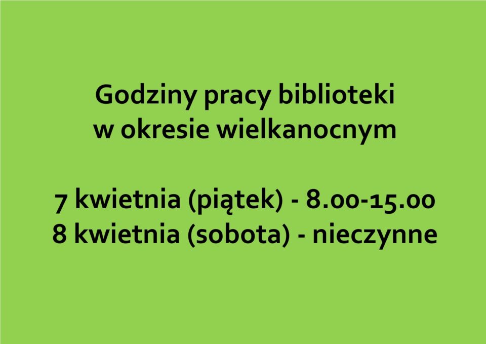 W okresie wielkanocnym biblioteka będzie pracowała następująco: