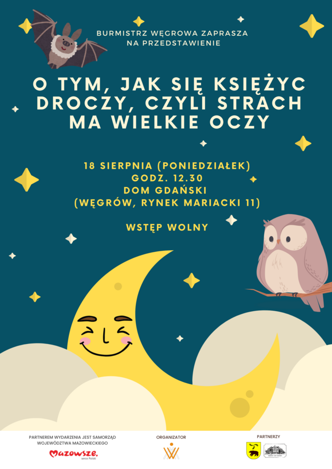 Zapraszamy dzieci na przedstawienie w bibliotece! Tym razem pod tytułem „O tym, jak się Księżyc droczy, czyli strach ma wielkie oczy”.