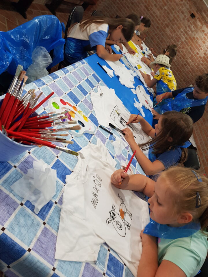 Malowanie koszulek zawsze ma wzięcie. Tak było i tym razem (18.07). Uczestnicy mogli wybrać wzór albo stworzyć własny. Trzeba dodać, że niektórzy zdecydowali się na tę drugą opcję i całkiem nieźle im wyszło.
