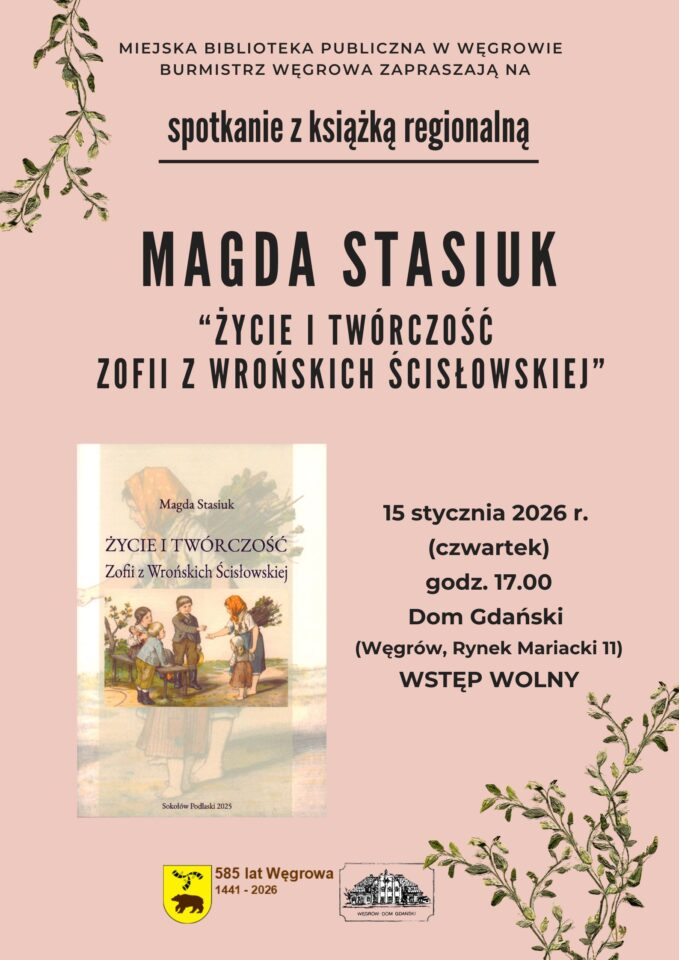 Spotkanie odbędzie się 15 stycznia 2026 r. (czwartek) o godz. 17.00 w Domu Gdańskim (Rynek Mariacki 11, Węgrów). Wstęp wolny.