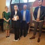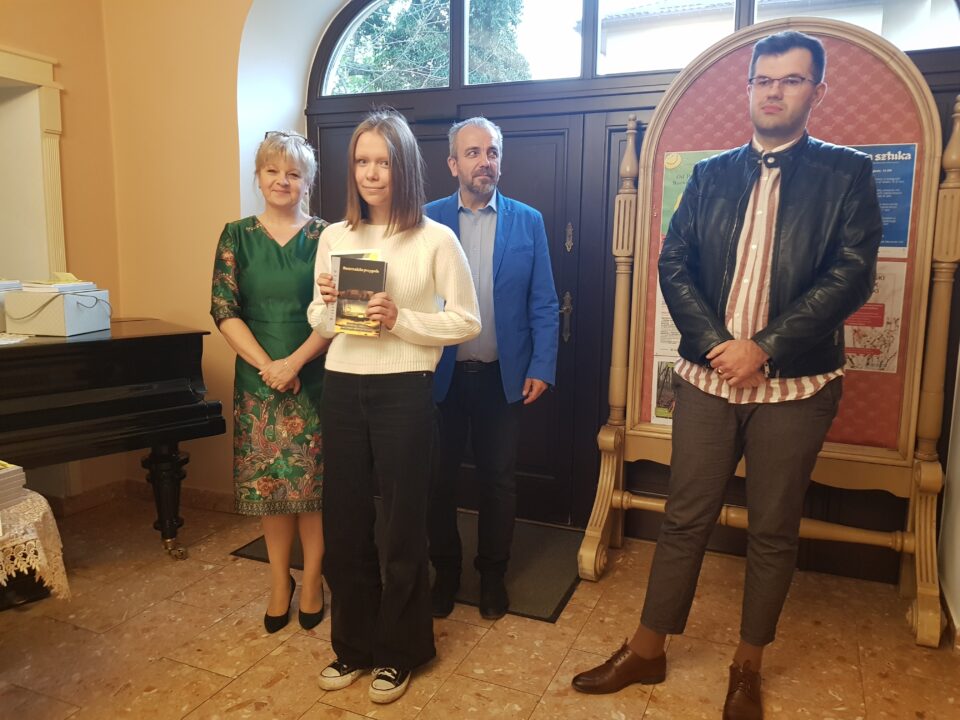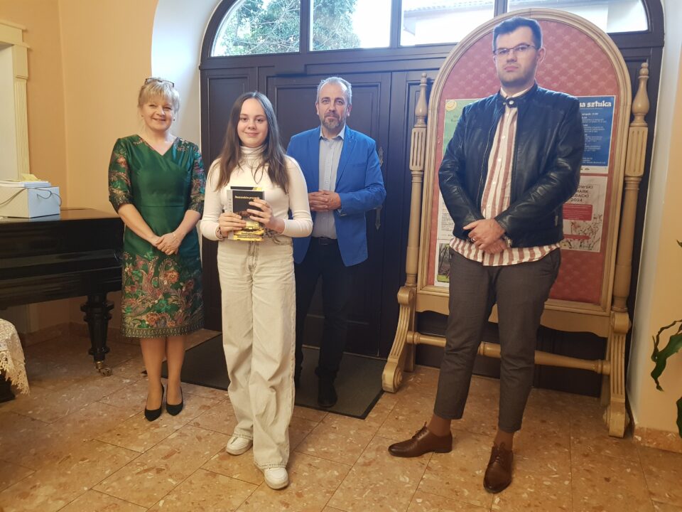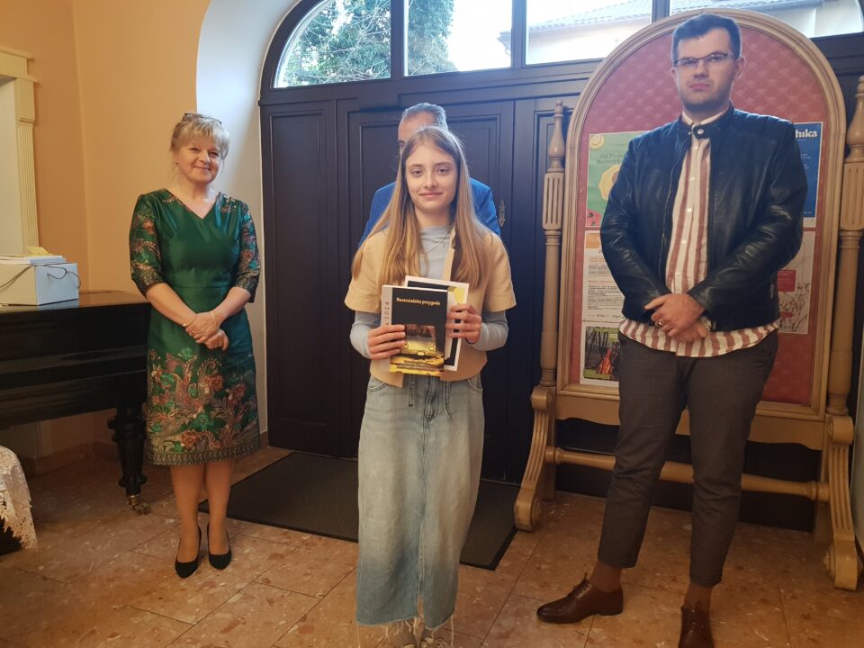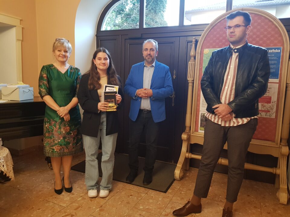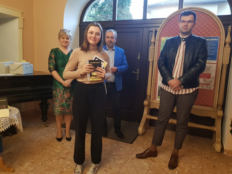 Gratulacje i nagrody wręczali dyrektor Miejskiej Biblioteki Publicznej Małgorzata Rospara, naczelnik wydziału promocji powiatu Adrian Majewski oraz sam Przemysław Jakóbczyk.