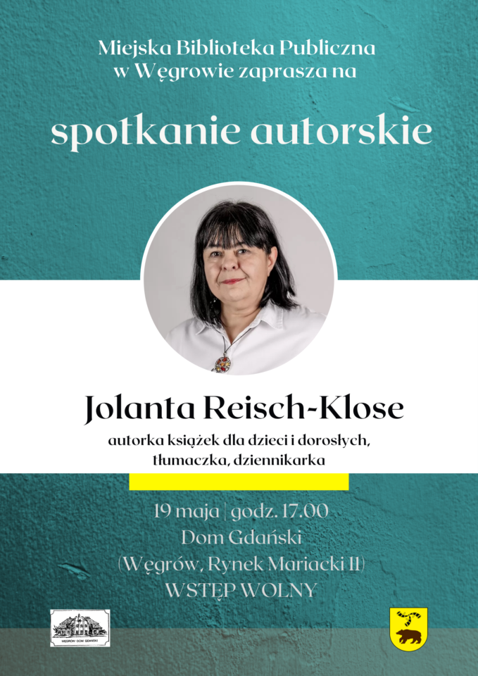 Zapraszamy na spotkanie autorskie z Jolantą Reisch-Klose, dziennikarką prasową i radiową, tłumaczką, laureatką ogólnopolskich nagród branżowych, autorką książek dla dzieci i dorosłych (Przygody kropelki Amelki, Wielka przeprowadzka fasolki Karolki, Ćma Beatka szuka mamy, Dlaczego Jan Paweł II lubił wtorki oraz Franciszek. Papież tysiąca uśmiechów). J. Reisch-Klose publikowała w prasie ogólnopolskiej, lokalnej oraz polskojęzycznej m.in. w Wielkiej Brytanii. Zainicjowała bielskie Biznesowe Spotkania Śniadaniowe. Związana jest z organizacjami pozarządowymi.