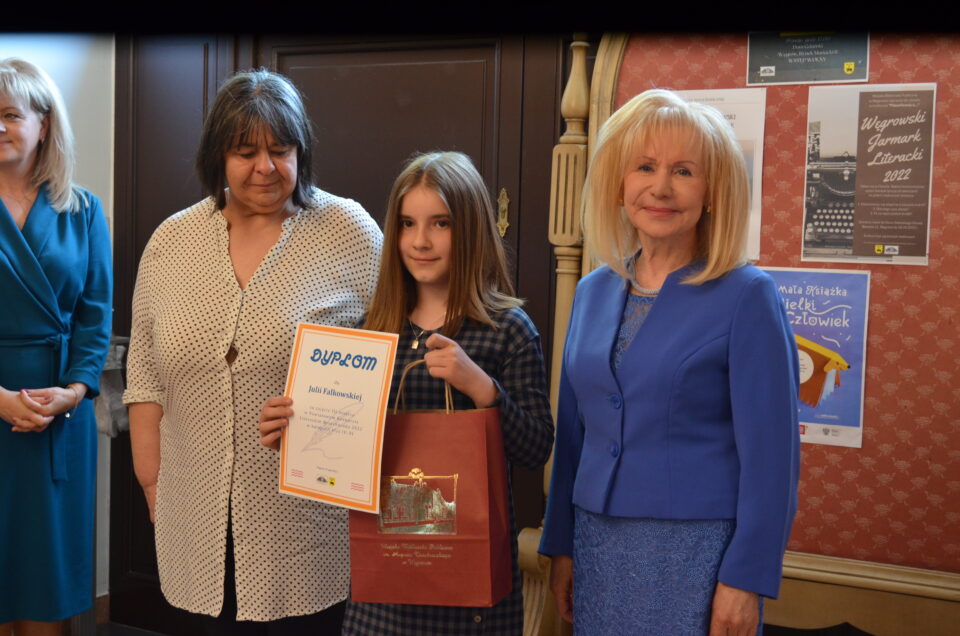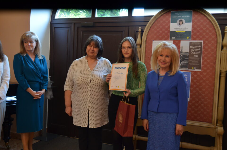Nagrody laureatom wręczały wiceburmistrz Węgrowa Halina Ulińska, dyrektor MBP w Węgrowie Małgorzata Rospara oraz J. Reisch-Klose. Nie zabrakło też gratulacji dla uczestników konkursu, w których podkreślano znaczenie i piękno języka polskiego, a także jak niezwykłymi ścieżkami chadza umysł pisarza.