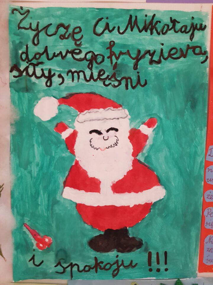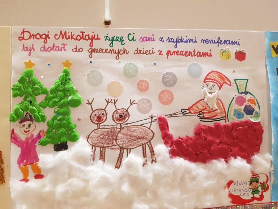 Zadanie konkursowe było jedno – samodzielne przygotowanie pracy plastycznej z życzeniami dla Mikołaja. A czego życzyć i w jakiej formie – tu dzieci mogły dać się ponieść wyobraźni. Nie zabrakło wyklejanek, wylepianek plastelinowych, wycinanek i kolaży. Kolorowych, śnieżnych, z tekstem, a nawet z serwetkami. Na konkurs wpłynęło aż 70 prac!